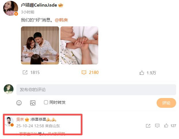 卢靖姗的评论区还出现了吴京的身影,他大大方方恭喜两人。很多人都记得卢靖姗当初紧急救场吴京的电影《战狼2》,电影播出后她也迅速在内娱走红。